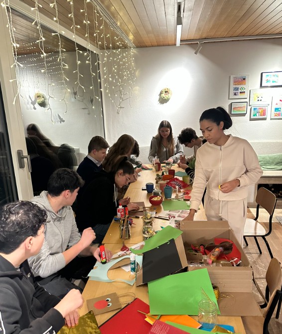 Am 02.12. setzten wir gemeinsam mit den Jugendlichen des Offenen Abends, die regelmäßig das Jugendhaus besuchen, unsere Kreativität in Bewegung. Zusammen gestalteten wir schöne Weihnachtsdekorationen für das Jugendhaus sowie kleine weihnachtliche Geschenktaschen, die die Jugendlichen mit nach Hause nehmen konnten, um später jemandem eine Freude zu machen.