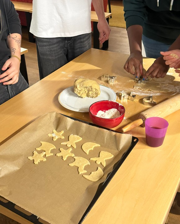 Am 09.12., ebenfalls im Rahmen des Offenen Abends, backten wir gemeinsam mit den Jugendlichen Weihnachtsplätzchen. Mit verschiedenen Formen und Geschmacksrichtungen war es ein fröhlicher Abend voller Begegnung, Lachen und Gemeinschaft. Bei warmem Punsch entstand eine wunderbare adventliche Stimmung.