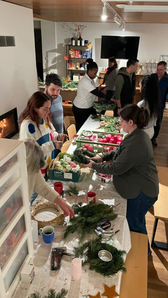 Am 29.11. kamen wir als maristische Mitarbeitende zusammen, um gemeinsam die Adventskränze zu gestalten, die in unseren Räumen im Jugendhaus, im CMI sowie in der Kommunität der Maristenbrüder aufgestellt werden. Auch Lehrkräfte des Maristenkollegs waren eingeladen, ihre eigenen Adventskränze zu gestalten.