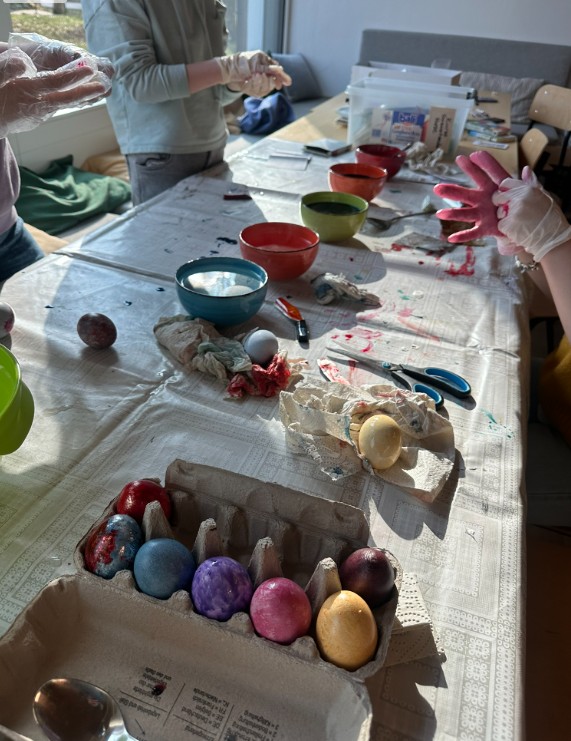 Natürlich bereiten wir uns auch hier im Jugendhaus auf diese besondere Zeit vor. Gemeinsam mit unserer Maristen Jugendgruppe haben wir in den Wochen vor den Osterferien unsere „Osterrallye“ gestaltet. Den Auftakt machte ein Film, der uns behutsam in das Thema einführte und zum Nachdenken anregte. In der darauffolgenden Woche wurden mit viel Kreativität und Freude Ostereier bemalt, jedes ein kleines Symbol für Leben und Neubeginn.
