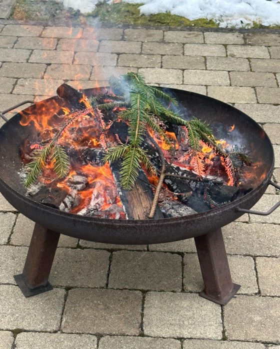 – Lagerfeuer auf der Terrasse mit Marshmallows
